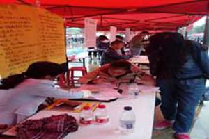 2017年9月16日,宝鸡市政府在陈仓园市民中心成功举办了“2017年就业扶贫暨秋季高校毕业生就业招聘洽谈会”。宝鸡易通人力资源公司积极行动,派员参加,通过广告宣传、彩页发放、二维码扫描和面对面交流等方式,耐心细致地向就业人员介绍公司概况、发展前景、人才需求和选择理由,求职人员就关心的工资福利、假勤保障和签订合同等事宜进行了咨询,工作人员耐心解答。本次招聘会上,有求职意向的80多人在公司进行了信息登记。