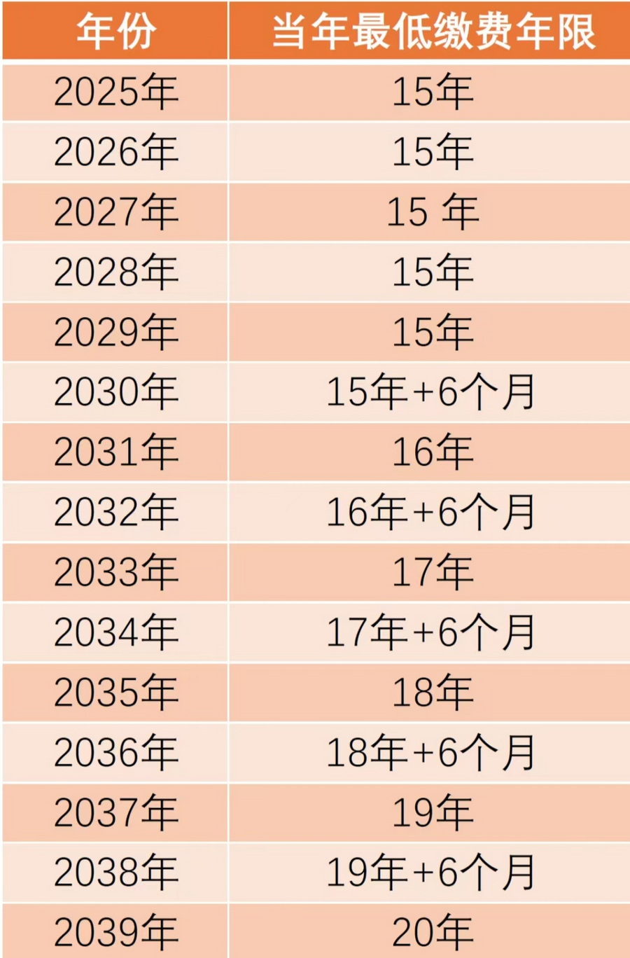 依据《国务院关于渐进式延迟法定退休年龄的办法》,2030年之前,职工按月领取基本养老金最低缴费年限仍为15年。 从2030年1月1日起,按照每年提高6个月的节奏,将职工按月领取基本养老金最低缴费年限由15年逐步提高至20年。
