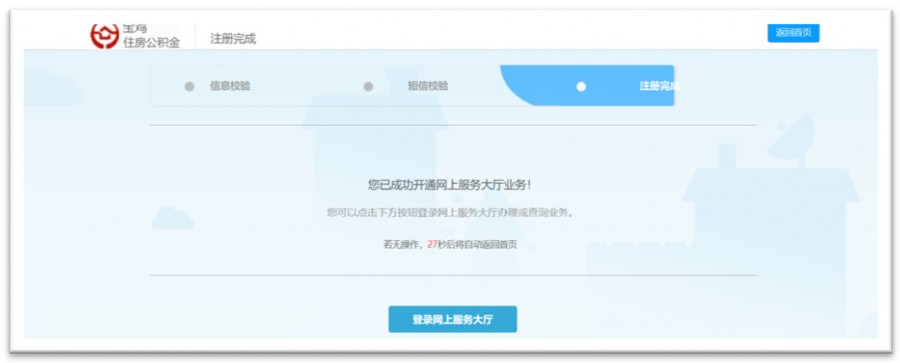 注册成功后,点击“登录网上服务大厅”,即可跳转至登录页面,输入身份证号码或者手机号码、密码、验证码, 点击“登录”即可登录网上服 务大厅。